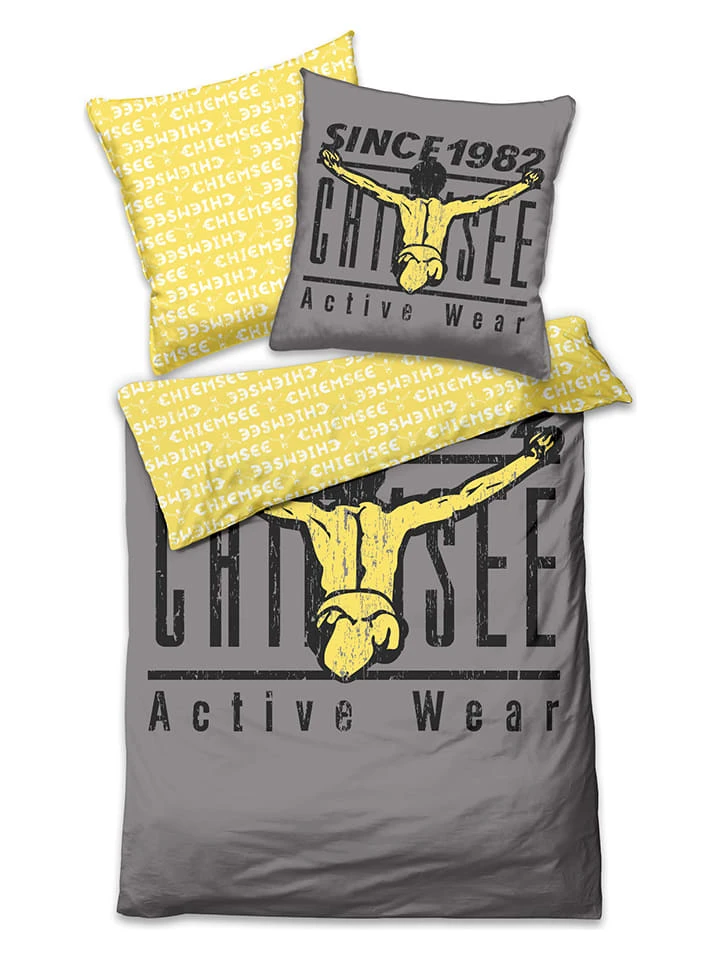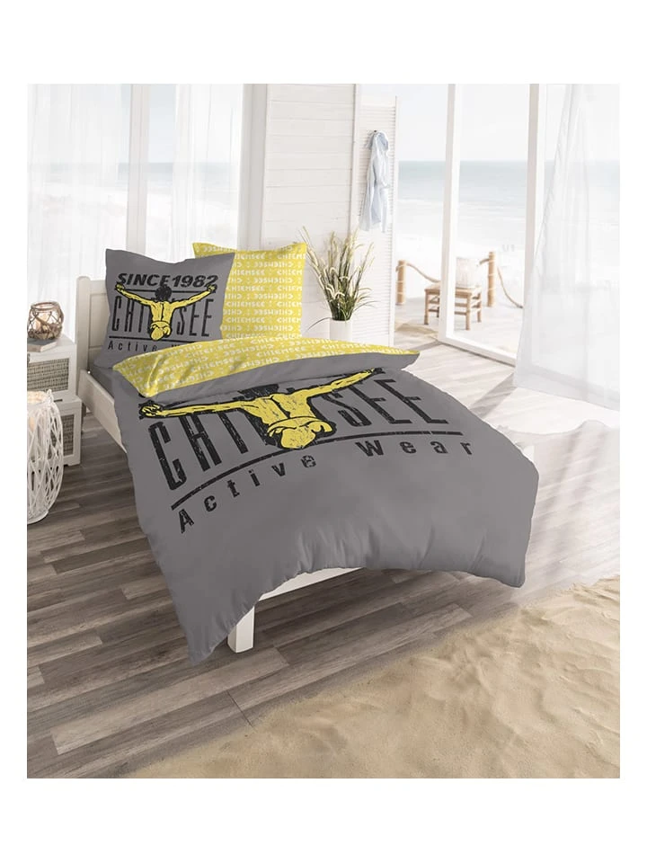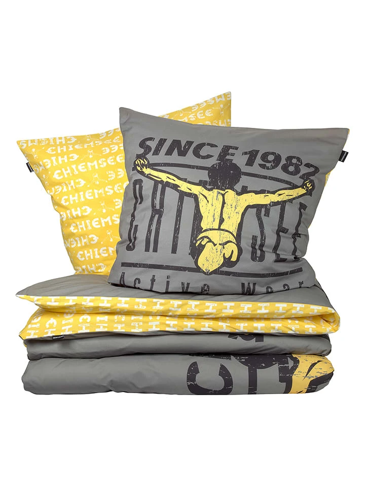Chiemsee Renforcé-Bettwäsche-Set „Acapulco“ In Grau/ Gelb
