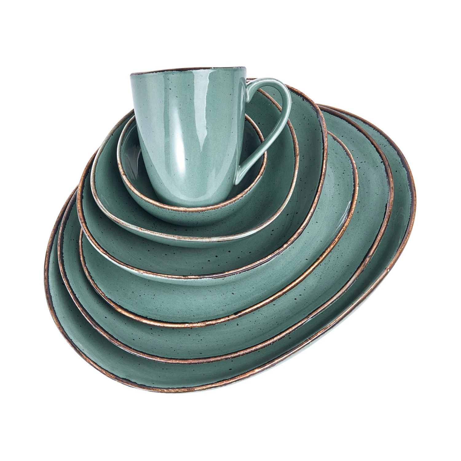 ¡que bonito! Der hochwertige Handmade Look des 16-teiligen Finca Geschirrsets aus Porzellan fällt sofort ins Auge. Kein Wunder: Die reaktive Glasur mit natürlichen Sprenkeln, die authentische Form und die Vintage Optik erinnern an echtes Handwerk, wie man es nur noch in alten Manufakturen findet. Damit ist Finca kein Geschirr „von der Stange“, sondern deckt Ihren Tisch mit individuellen Schmuck- und Sammlerstücken.