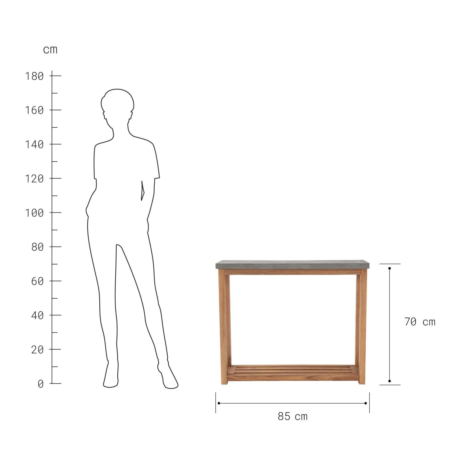Breite 85 x Tiefe 20 x Höhe 70 cm