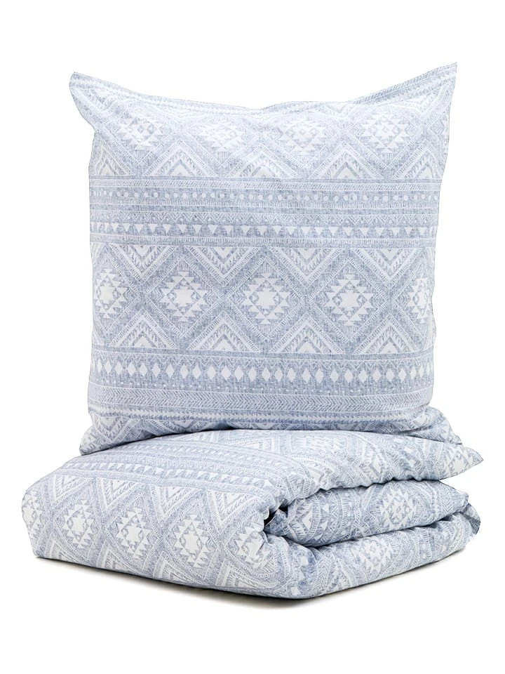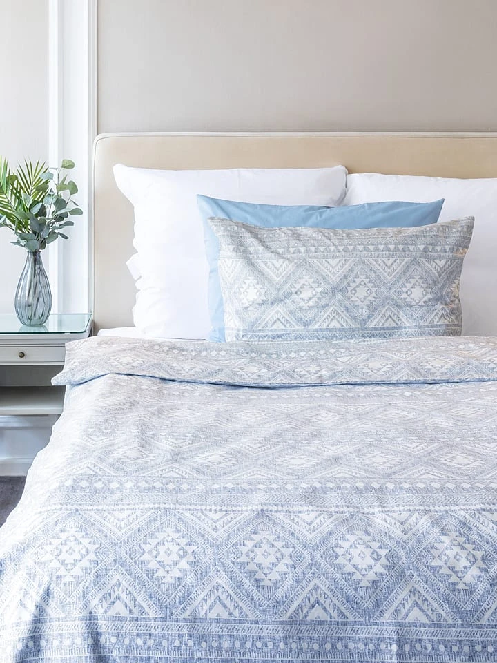 Perkal-Bettwäsche-Set In Blau/ Weiß