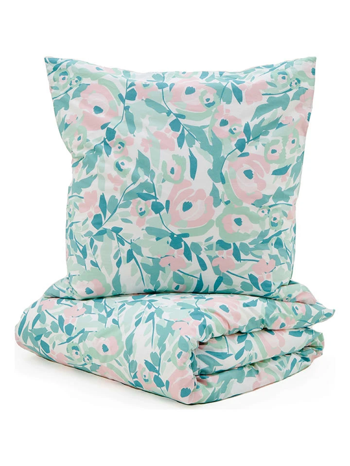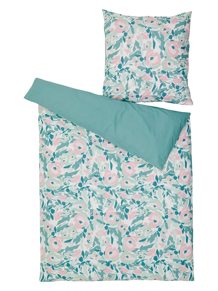 Perkal-Bettwäsche-Set In Türkis/ Rosa
