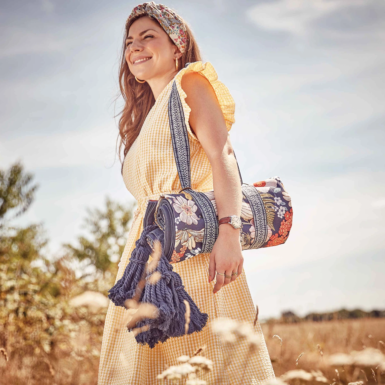 Picknickdecke L 175 X B 154cm BETWEEN FLOWERS In Dunkelblau